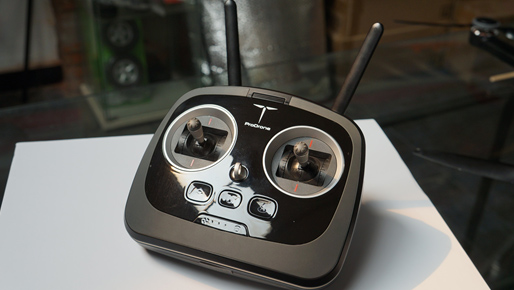 遥控器摇杆在顶端采用灰色塑料,设计的非常美观显档次,但是摩擦度有点不够,如果是新手使用单指操控方式飞行容易会出现打滑脱杆的现象,建议厂家把摩擦度加大一下以尽量减少脱杆导致的风险,另外,摇杆的长短不能调节,有点不方便。