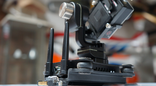 图传发射和云台是一体设计的,Gopro采用HDMI输出图像。
