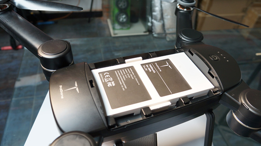 1:飞机外观设计:ProDrone这款Byrd,是双折叠的设计,非常的方便,折叠之后面积很小,目测仅Ipad大小,电池仓设计的很大,安装位置是顶置设计,更换电池还是比较方便的。