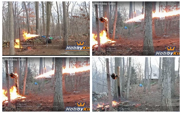 新鲜的鱼有了,可以开始烧烤了。康涅狄格州的Austin Haughwout利用装有火焰喷射器的无人机进行烧烤,被烤的是一只感恩节的火鸡,想来这只鸡的味道一定与众不同。无人机又能钓鱼又能烤鸡,不知道它的刀工如何呢?