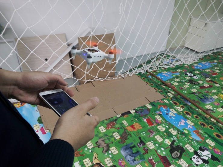 从现场测试来看,无人机能够轻松起飞,并且能持续飞行数分钟,不过在自动起飞和定点悬停上,因为是在室内,所以无法实现。据Sam提供的室外试飞视频,这些功能是具备的。目前他们的软件正在紧急开发中,在交货的时候这些功能将进一步完善。