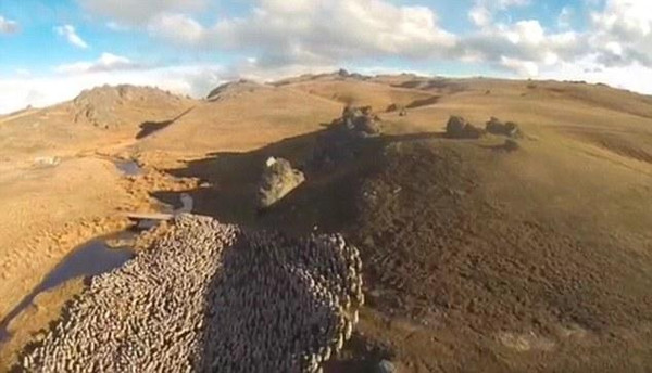 新西兰农民布雷特·桑德斯组装了一款特制的无人机,在上面安装喇叭和警报器后,利用其在一万多公顷的农场中控制羊群方向,代替牧羊犬帮助放养2000只羊。桑德斯已经向You Tube上传了视频,显示无人机拍摄羊群通过农场的梦幻般场景,吸引了全球无数人点击观看。