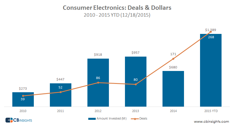 在机构投资者中,Intel Capital 荣登榜首,其投资组合中的公司包括 Razer 和 Skully Helmets.。名单上的其他非企业风投还包括 Kima Ventures,Foundry Group,New Enterprise Associates 等等。值得指出的是,像 Kickstarter 和 Indiegogo 这样的众筹网站是消费类电子产品公司最流行的初期资金寻求平台之一,这些平台帮助消费类电子产品创业公司筹集资金生产产品,评估需求和验证产品是否适合市场。