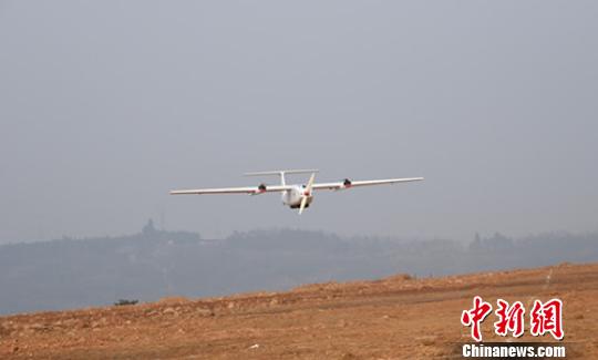 中新网绵阳12月28日电 (董媛媛记者 杨勇)28日,一架固定翼无人机在四川北川通航产业园内原地垂直起降,随后在设定的航线内进行飞行,标志着该无人机正式下线投入批量生产,这也是目前国内率先发布的固定翼垂直起降工业无人机。