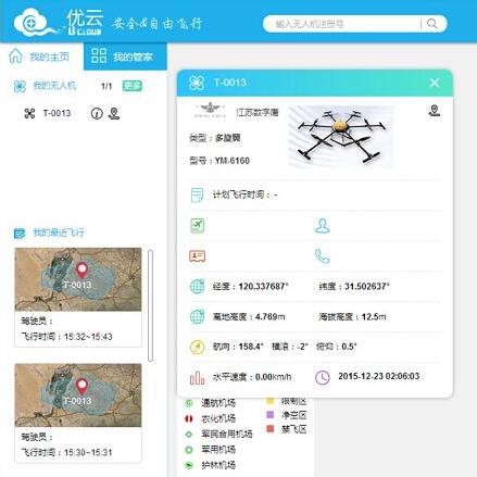 与此同时,接入系统的无人机用户也可以利用该系统,“通过屏幕可以看到哪里能飞,哪里不能飞,以及当前的飞行条件,一目了然。这也是给无人机用户提供的一种服务。”江苏数字鹰科技发展有限公司总经理陈乐春这样解释“U Cloud”优云系统。