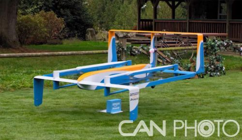 不久前亚马逊公布了他们的PrimeAir快递服务的无人机模型。TopGear的前主持人吉米·克拉克森在广告中为这款无人机做了代言。这款无人机基本的设计灵感来源于2013年亚马逊的CEO杰夫·贝佐斯设想的那款黑色快递无人机。2015年的这款新式快递无人机将能承载5磅重的货物,在水平飞行之前它能像直升机那样垂直升空。