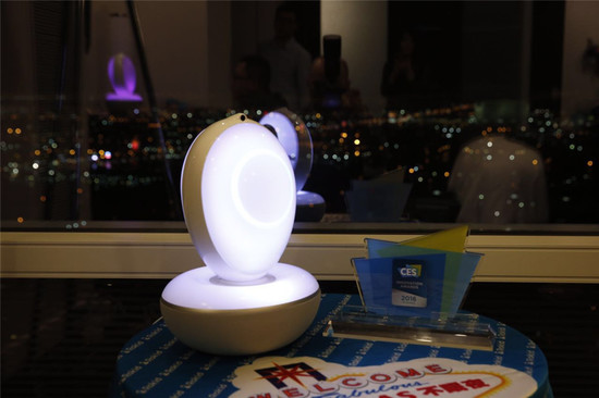 家庭机器人Rokid也来到了CES上,这款机器人定位为智能管家,通过语音和梦幻般屏幕结合,达到控制播放歌曲、查看天气、互动学习等特点。其最大的特点就是外观设计十分独特,类似鹅卵石,也可以看做机器人头。两侧边缘还具备触控能力,可以控制声音大小、灯光亮度等等。