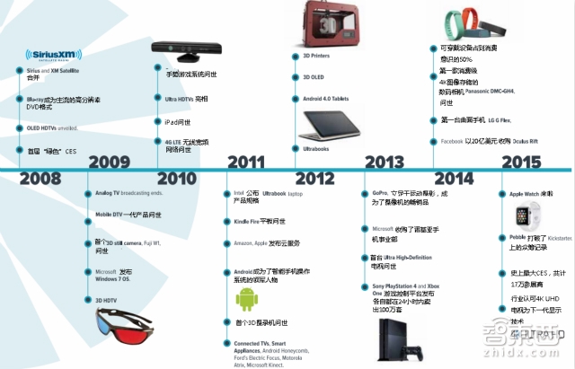 此外,CTA在这次半年期报告还总结了消费电子品里程碑。我们看到21世纪开始至今的15年里,消费电子品飞速的发展状态。