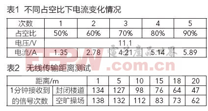 由表2可知:无线通讯在15m之后的传输效果有明显下降,这是由无线通信模块的功率决定的,实验表明无线通信部分在设计需求范围内能够可靠运行。