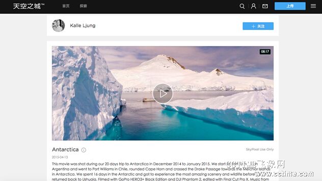 从空中飞翔的无人机,到航拍爱好者手中的APP,再到社区平台天空之城,航拍爱好者通过手中的APP就能一键把航拍作品推送到天空之城。那里有挪威的火山,也有大洋中的蓝鲸,还有下着雪的森林……天空之城已经聚集了全球最顶尖的航拍作品。