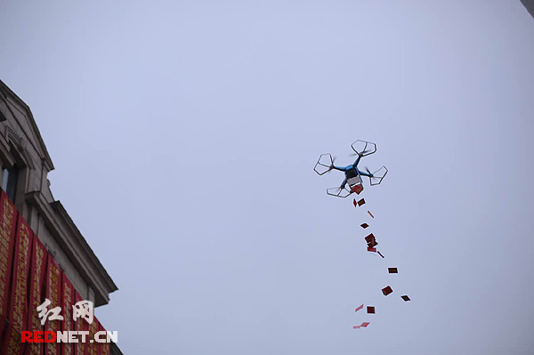 无人机在现场投放红包红网长沙1月16日讯(时刻新闻记者 杨杨 通讯员 邓玲)1月16日,基石无人机旗舰店在长沙渔人码头商业广场开幕,其开业仪式上礼仪、搬运工和揭牌仪式都由无人机代替人工完成。活动现场,无人机还向人群连撒红包雨,让市民们打开眼界。