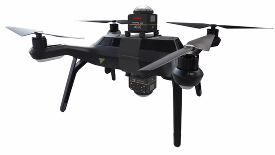 3D Robotics还为Solo无人机推出了柯达摄像头,安装在Solo无人机顶部和底部的圆形拍照镜头让用户可以拍摄360度全景视频,附带的软件可以自动将2部分视频两组合在一起,在虚拟现实头盔当中播放,带来惊人的飞行感觉。
