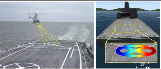 一架火力侦察兵无人机正在准备自主降落到纳什维尔号军舰的后甲板上。