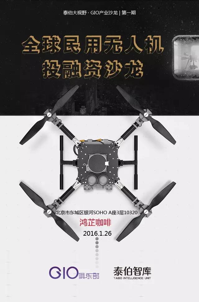 2016年1月26日,《泰伯大视野》第一期 · 全球民用无人机投融资沙龙将为您揭晓上述问题的答案。届时,泰伯智库将发布全球民用无人机风险投资报告。
