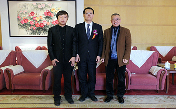 宇辰网常务副总裁沈溪(左一)、中国电子商务协会网络整合营销中心主任刘东明(中)、CEO加工厂创始人范斌(右一)合影/图