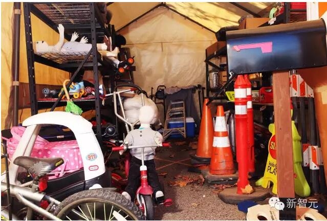 这些自行车只是在测试中用到的一种道具,还有许多道具被存储在拖车的大棚中和装有很多小型谷歌自制自动驾驶原型车的宽大的车库中。Villegas称拖车的大棚为“我的玩具箱”。里面有锥形交通路标,表示各种危害的路标,邮箱,人造植物,旱冰鞋,雨伞,行人和——这会令人不安——穿着衣服,孩子大小的假人。