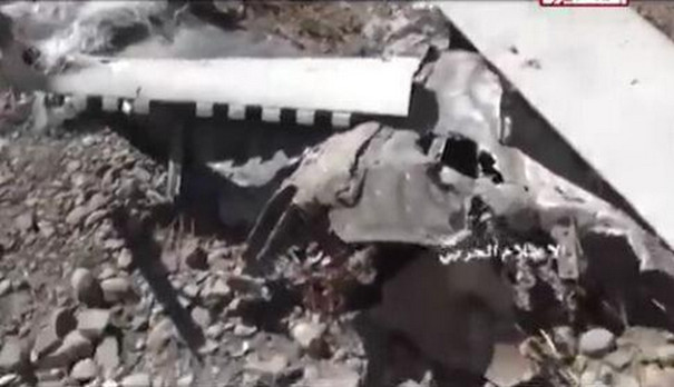 也门电视台播出的被击落的无人机残骸,据称这是一架美国侦察无人机
