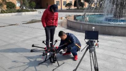 尤溪“飞手”周贤亮与同事调试无人机设备。