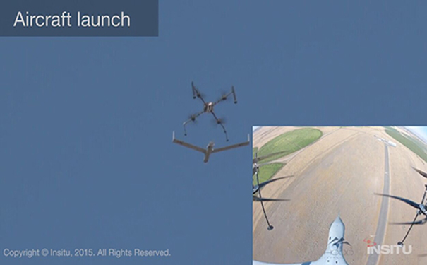 空投方式需要借助母机搭载固定翼升空,到达至一定空域后释放,从而完成固定翼的发射工作。比较典型的是波音公司去年推出的无人机发射和回收系统FLARES。FLARES类似大型四旋翼无人机,既可以作为固定翼无人机的发射台,又可以对无人机进行回收。2015年8月,Insitu公司利用“扫描鹰”无人机对FLARES进行了一系列测试。测试期间,下方搭载了“扫描鹰”的FLARES直接飞上空中,开始盘旋,“扫描鹰”随之加速,最后脱离飞出。FLARES飞回发射基台,在操作人员将回收系统固定在其底部后,FLARES再次升空准备回收无人机。