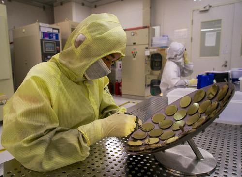 资料图片:科研人员正在处理制作芯片所用的金属。