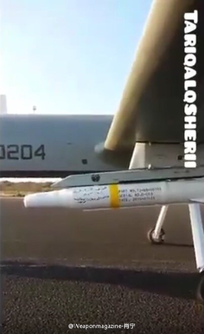 目前沙特阿拉伯领导的多国联军对也门的军事行动仍在继续,而网上也出现了一张新图片,显示沙特装备的无人攻击机也投入了前线。这架机号为20204的无人机挂有一枚外形类似于AKD-10的导弹,从照片的细节初步判断,这架无人机应该是中国生产的“翼龙-1”无人机。这是“翼龙-1”无人机第一次被证实出现在也门战场。