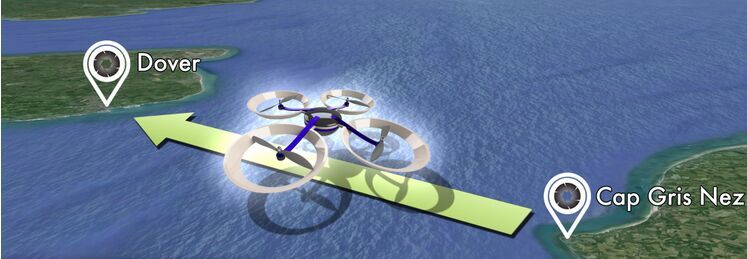 吉利海峡的记录。这是一个长达34公里的飞行航程! 同时也是世界上最长的单程四旋翼无人机飞行。