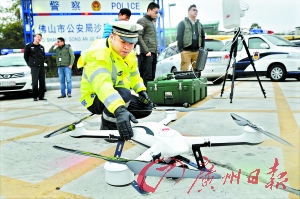 上午10时30分,在广佛高速公路沙贝执勤点,随着指挥员一声“起飞”的指令,无人机腾空而起,其搭载的高清记录仪将画面实时传输到后方,路面的情况一目了然。据悉,用来航拍违法的无人机最高能飞到3000米,最长能飞一个小时。