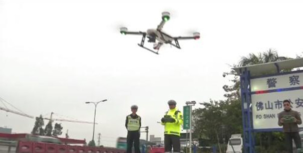 从今年开始,广东公安交警部门派出航拍无人机,对违反交通行为进行执勤。