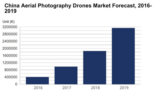在 2019 年之前,航拍无人机的出货量或许会以 68% 的年均复合增长率发展,直到 2019 年的 300 万台。