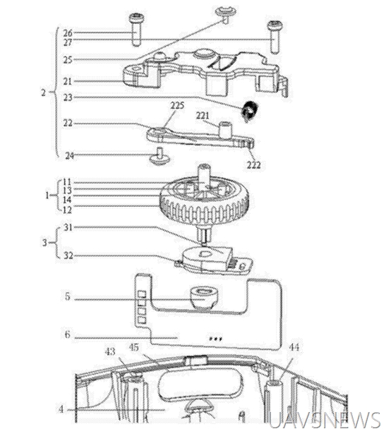 小米无人机的螺旋桨底部有个内螺纹(图中23位置),方便安装,和大疆的自锁浆相似。
