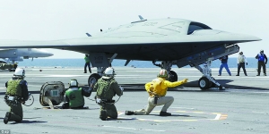 美国海军5月14日首次从航母上弹射起飞一架X-47B无人机(右图)并获得成功,这意味着美军今后可在全世界部署无人机,而无需其他国家提供陆上基地。