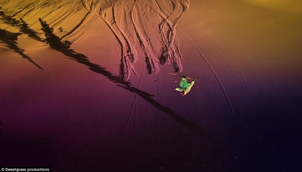 6、LED滑雪服最大的问题是每当滑雪者踢起雪花尤其是在弯道时,灯光看起来总像雾中的车灯。要使空气中的雪花均匀飞洒拍摄出漂亮的照片而又不影响滑雪者的视觉是个难题。