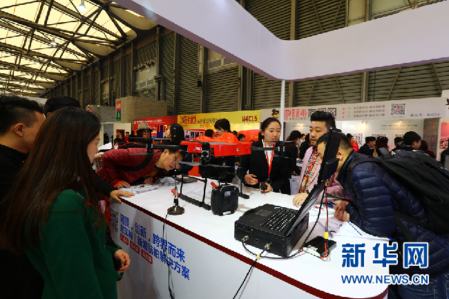 2月24日,易瓦特推出的专业级八旋翼航拍器吸引观众眼球。新华网梁鸿儒 摄
