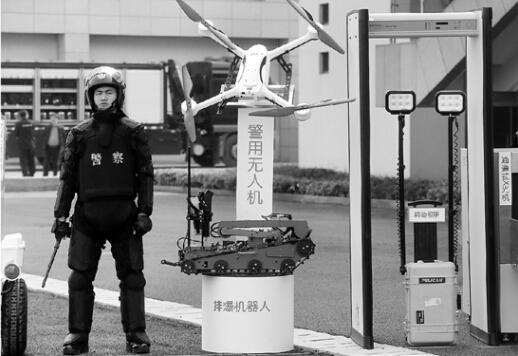 “这架警用无人机价值100多万元,它不但能用于侦查,还自带高清摄像头,无线连接到控制设备后,可以看到无人机观察到的现场。”据现场特警介绍,警用无人机还能承载一定重量的物品,实战中可大显身手。
