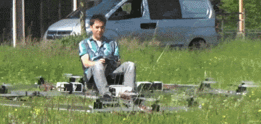 然而风水轮流转,如开头所说:随着电动机、锂电池、GPS和陀螺仪的发展,多旋翼无人机和其自动驾驶技术普及并且成本愈发低廉。又有一些 疯子or 天才,脑洞大开的用多旋翼无人机来载人!