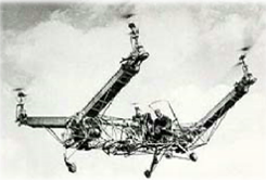 1921年,George De Bothezat在美国俄亥俄州西南部城市代顿的美国空军部建造了另架大型的四旋翼直升机先后进行了一架大型的四旋翼直升机,先后进行了100多次的飞行试验。