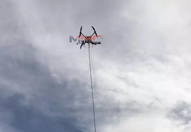 担任本次飞行测试主飞手的是科比特航空学院院长、王牌飞手卢致文,他熟练地快速将无人机组装起来,并安装好特制消防水管,一切准备就绪以后。无人机平稳起飞,快速飞到指定高度和位置,消防喷枪对准“高层着火点”,启动地面增压水泵,无人机喷出的水龙准确命中目标,并快速扑灭着火点,灭火测试取得成功,无人机返回地面。