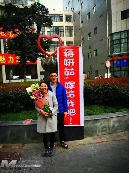 3日下午6时30分许,绵阳404 医院 广场飞来两架 无人机 ,在空中不断盘旋,上面挂着横幅“蒋妍茹,嫁给我吧!”