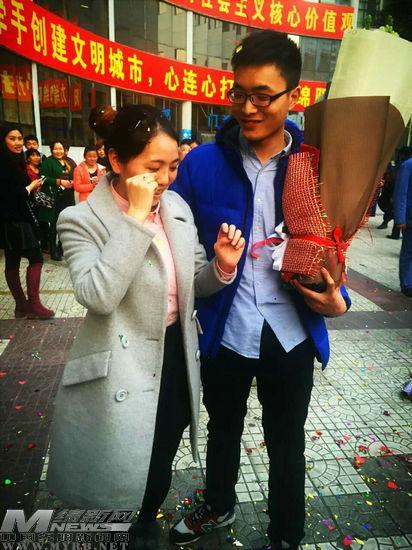 这时住院部一位女孩被一男孩蒙着眼睛走了出来,接着男孩把女孩抱到一个用蜡烛摆成的心里,并单膝跪下说:“嫁给我吧!”同时 无人机 挂着戒指准确无误的飞了过来。