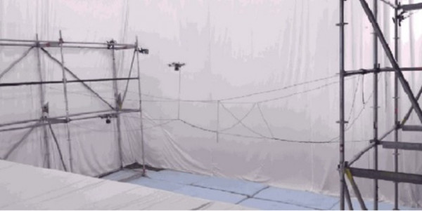 根据一部瑞士苏黎世联邦理工学院拍摄的影片,可以看到有三台无人机正忙着用绳索建造一座“绳桥”,而到了影片尾声,三名兴奋的大男孩一一通过这座绳桥。除了两边的基地是人为先架设好的,其余皆是由无人机来完成。这个绳桥总长度共 7.4 公尺,每一个环结都是由无人机系紧,而绳索的材质是迪尼玛 (Dyneema)。迪尼玛材质拥有非常好常好的张力且拥有低重量强度比(weight-to-strength ration),使它成为空中建造理想的绳索材质。每一尺的重量只有 7 克,一条直径 4 厘米的迪尼玛绳索可以承受 1,300 公斤重的物品,而这 7.4 公尺长的绳桥,运用了各种不同绳索技巧,像是打结、连接和编织,都难不倒无人机。
