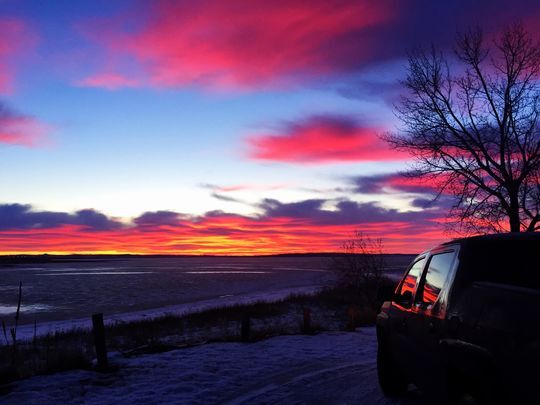 佩克堡刚刚进入冬天,温度零下五度,白雪已经覆盖了整个城镇。当月亮还没完全落下,太阳刚刚从东边升起,阳光照射在湖面形成一条条淡粉色条纹,Sean开着皮卡望着路上的风景,他明白这一趟来的值了。