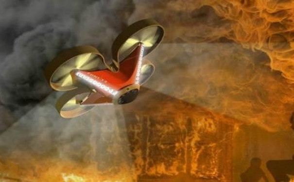 火焰风暴无人机:这是德国青蛙设计公司研制的另一款无人机,它被称为“火焰风暴”,使用一组先进传感器穿行于燃烧的建筑物。LED强光灯和短波扩音器用于引导幸存者抵达安全地点。