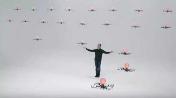国际着名魔术师Marco Tempest同艺术家Daito Manabe,Motoi Ishibashi与东京的研究团队Rhizomatiks共同创作完成了一场精彩唯美的无人机表演。