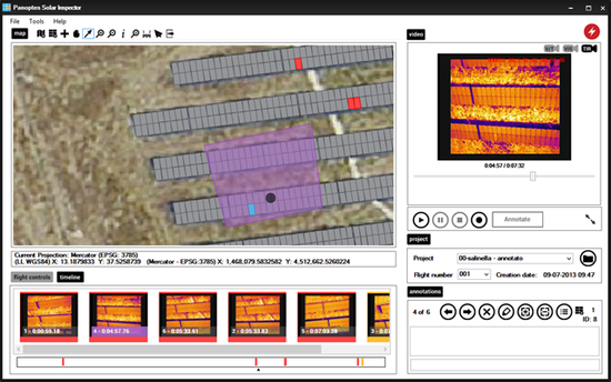 首次飞行无人机拍摄了RGB图像,第二次飞行无人机将热成像数据传输到了Panoptes的太阳能检查软件供专家在事后进行分析。