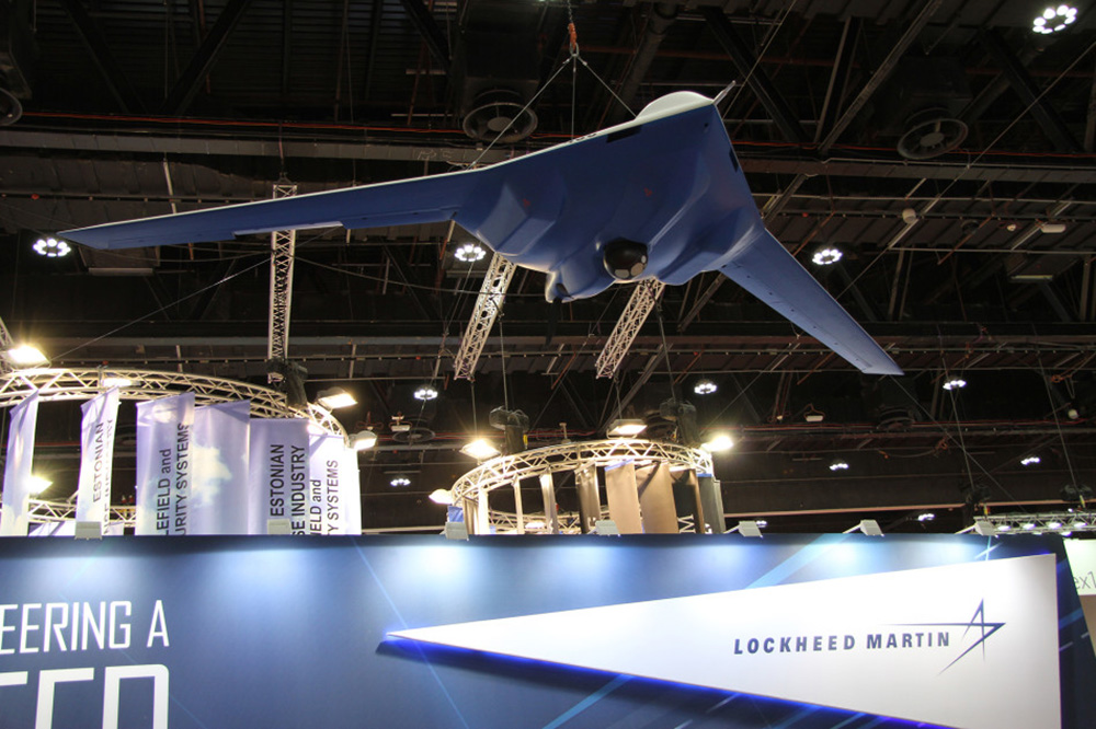 01.图为洛克西德·马丁公司展示隐身战术级先进无人机。该机成为本届展会的焦点。