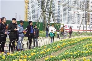 当天,郁金香还没有全部盛开,来赏花的市民并不算多。当他们打开背包,组装无人机时,很多游客都围上来观看,特别是孩子,兴奋地直喊:“飞机!有飞机!”