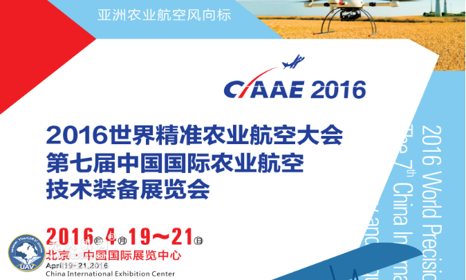 被誉为“亚洲农业航空风向标”的2016世界精准农业航空大会暨第七届中国国际农业航空技术装备展览会(CIAAE 2016)将于2016年4月19-21日在北京•中国国际展览中心召开。