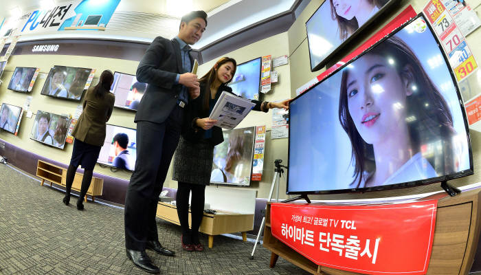 韩国乐天Himart卖场里的TCL电视展台
