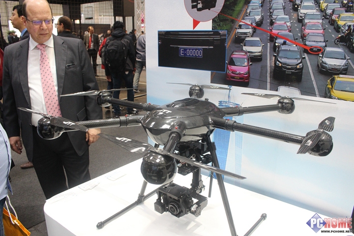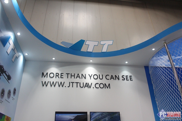 根据展台人员介绍,JTT无人机可以实现指哪去哪,还能够实现随时悬停、随时启动、自动返航。