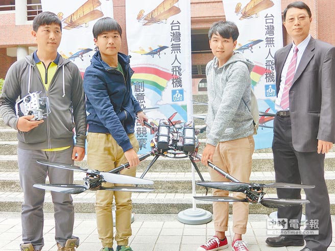 航太系昨天也秀出学生耗时1年完成的八旋翼无人机,专任助理蓝 昕说,这台无人机特性是可载重15公斤、飞行1小时,难在于系统整合,精算载重重量与组件重量的平衡,用意是提高用电效率,让飞机飞更远更久,可应用农田喷洒农药。